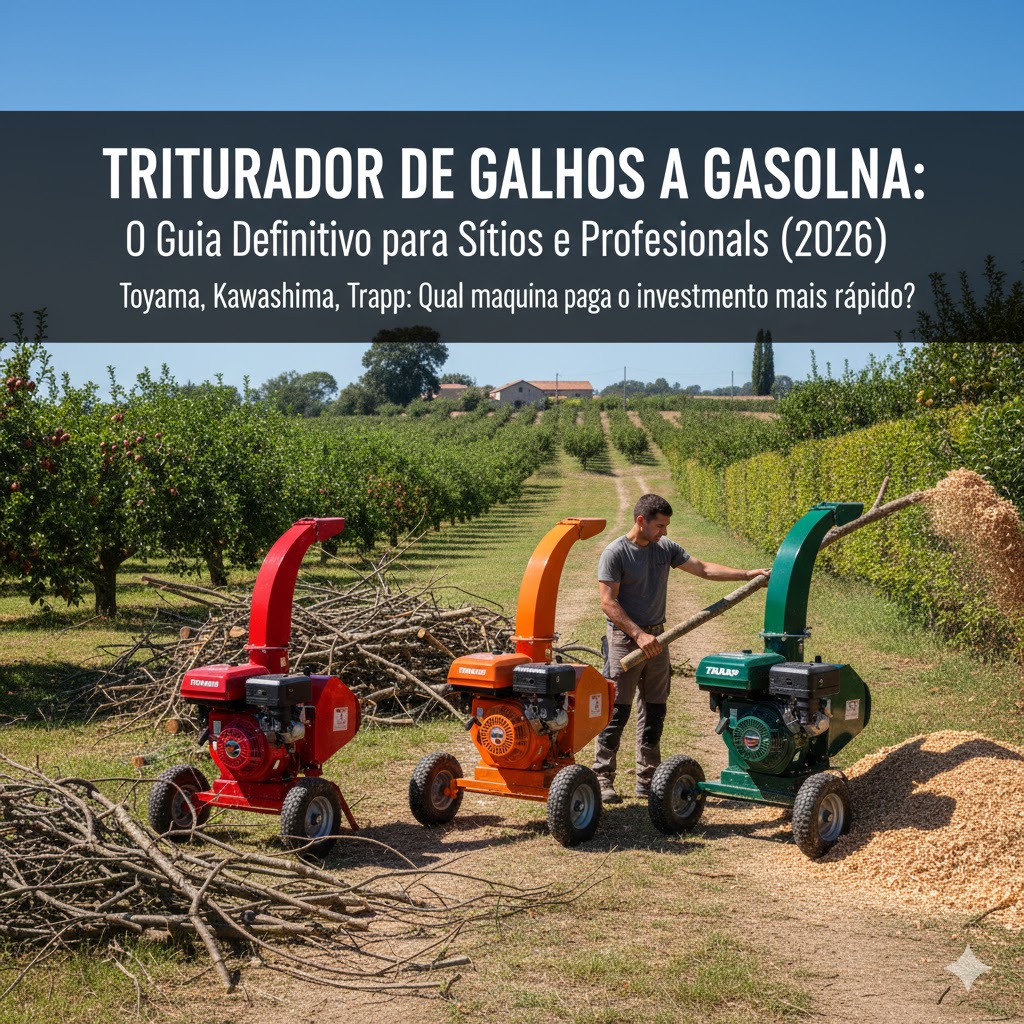 Sítio e Chácara (Grande): Para galhos grossos (até 50mm) e liberdade sem fios, o Kawashima TF50S (7HP) é a escolha equilibrada. Se o trabalho for industrial, o monstro Trapp TR-500G (15HP) é a única opção que aguenta o tranco diário.