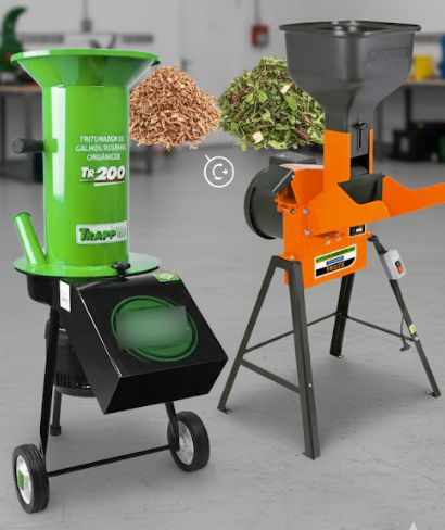 Trituradores de Martelos: Possuem peças móveis que “esmagam” o material. São os reis da folhagem verde, restos de frutas e compostagem. Eles não cortam tão rápido, mas não entopem. (Ex: Trapp TR-500).